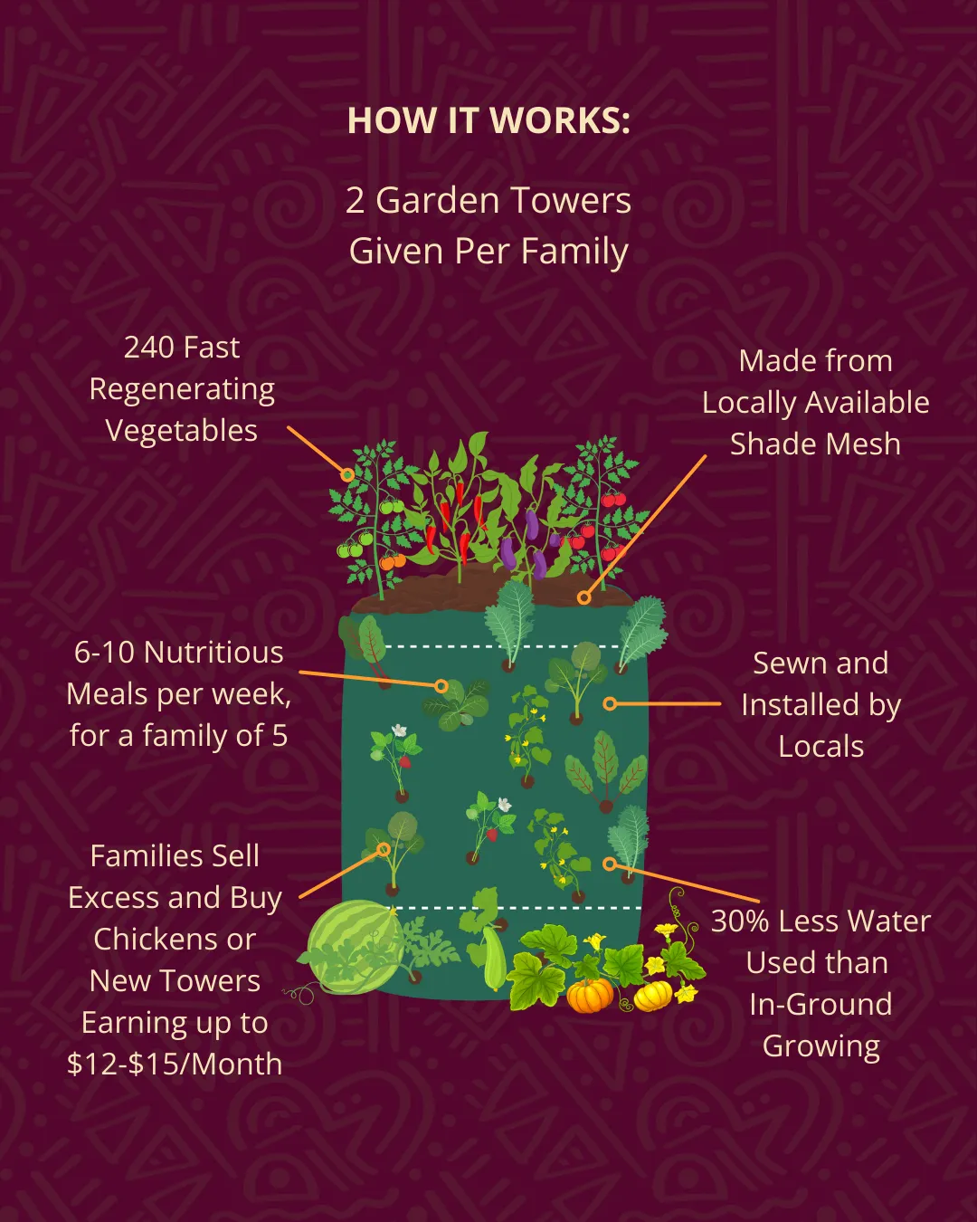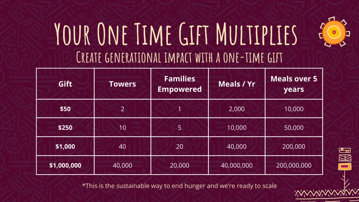 For Mary, the Garden Tower isn’t just a food source — it’s a steady income stream and a path to financial stability. And for just $50, you can give another family the same opportunity to feed themselves, earn an income, and build a better future.